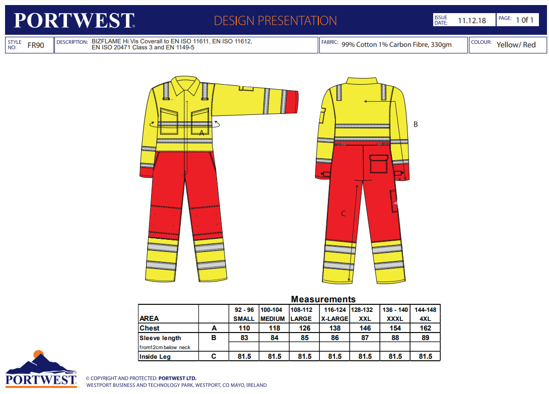 Datasheet - https://www.portwest.com/products/view/FR90/YER
