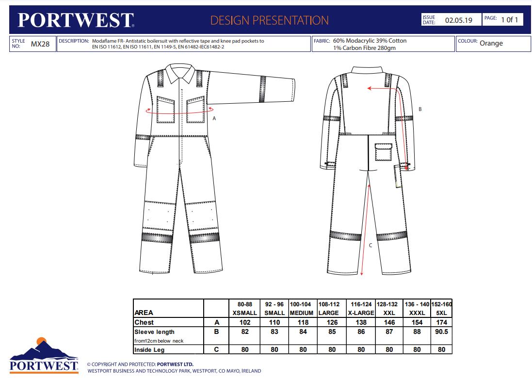 Datasheet - https://documents.portwest.com/datasheet.php?style=MX28&lang=GB&itemcol=MX28ORR&facility=902