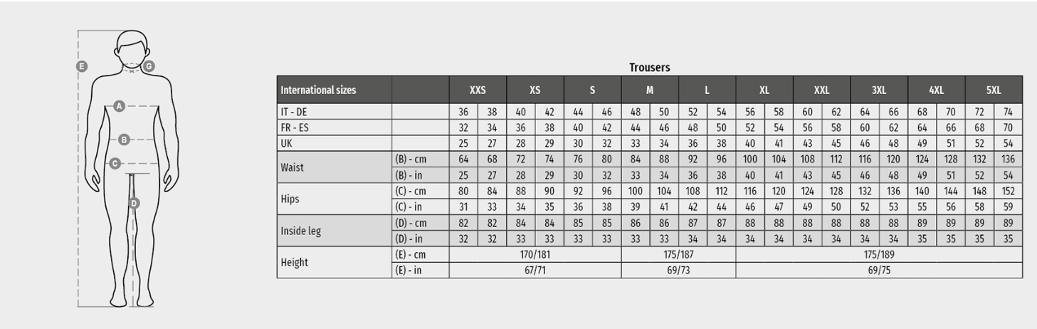 Unisex Bermuda shorts, “4-way stretch” fabric, with side elastics and belt loops, closure with zip and customised button. On the front, they have two rounded pockets, a coin pocket on the right, a safety pocket closed with a zip on the left. On the front of the left leg, there are 3 pockets: a horizontal pocket closed by a zip, a pocket with shaped flap closed with Velcro and equipped with a badge holder and a small vertical pocket closed by a zip. On the front of the right leg, there is a retroreflective stripe. On the back there are: a pocket with flap closed with Velcro and a pocket without flap but with 2 retroreflective stripes, a hammer ring (right leg), an open tape measure pocket (right leg) and a phone pocket with flap and Velcro (right leg). The trousers also have side seam topstitching and contrasting bartack reinforcement stitching in various points. The middle (Italian) sizes 48-50-52 have a 31 cm internal leg length.